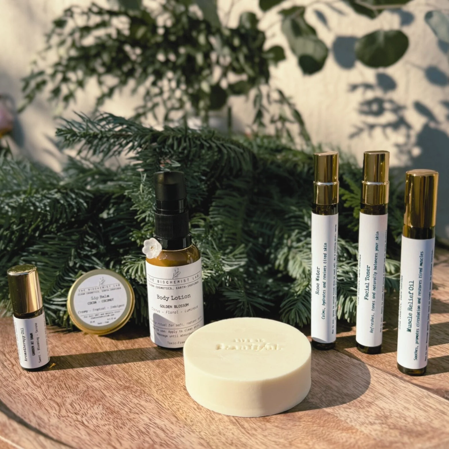 Discover our debut collection: a curated ritual of skin nourishment, aromatherapy, and mindful care — crafted by a biochemist using safe, non-toxic, and nature-derived ingredients you can trust. Each product is designed to give you peace of mind, a moment of calm, and the feeling of being truly cared for.
